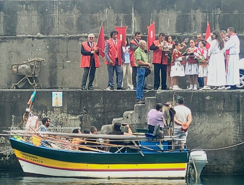 Gisteren was hier het feest van de Divino Espirito Santo, met een mis in de kerk van Calheta, met een DJ en hapjes en drankjes op het kerkplein. Vandaag gaat de pastoor met muziek langs de haven en worden de boten gezegend. Een hele vrolijke gebeurtenis.